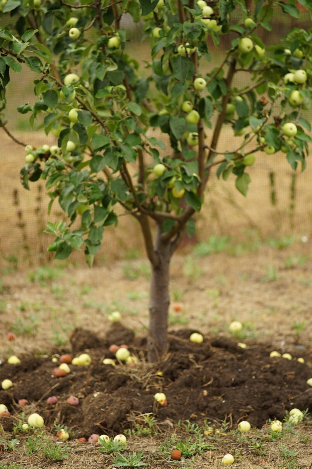 Letní měsíce bývají horké a suché, a proto je důležité udržet půdu kolem jabloní dostatečně vlhkou. Především mladé stromy nebo stromy na slabších podnožích mohou při suchu snadno strádat, což se projeví drobnějšími plody nebo jejich předčasným opadáváním. Zalévejte jednou týdně vydatně – ideálně ke kořenům a večer.
