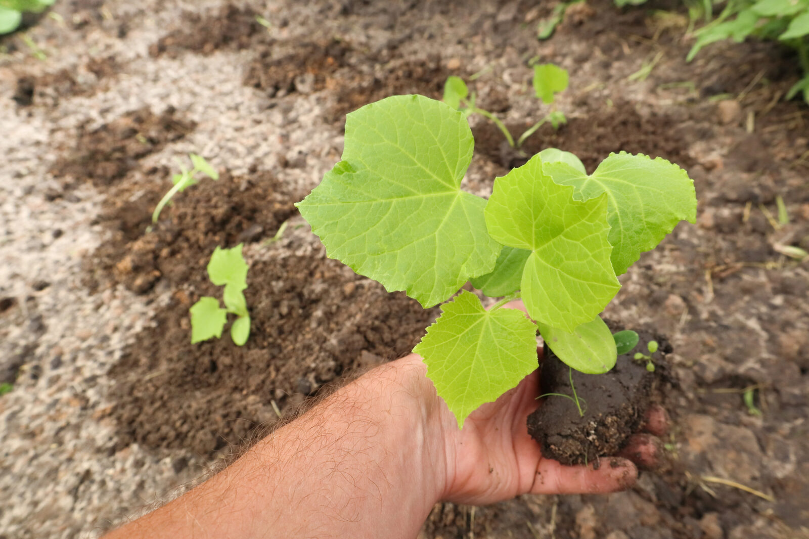 - Výsev semínek: Semínka vysévejte do hnízd (2–3 semena na jedno místo) ve vzdálenosti cca 80 cm od sebe. Do skleníku můžete začít už v dubnu, venku po zmrzlých mužích (polovina května).
